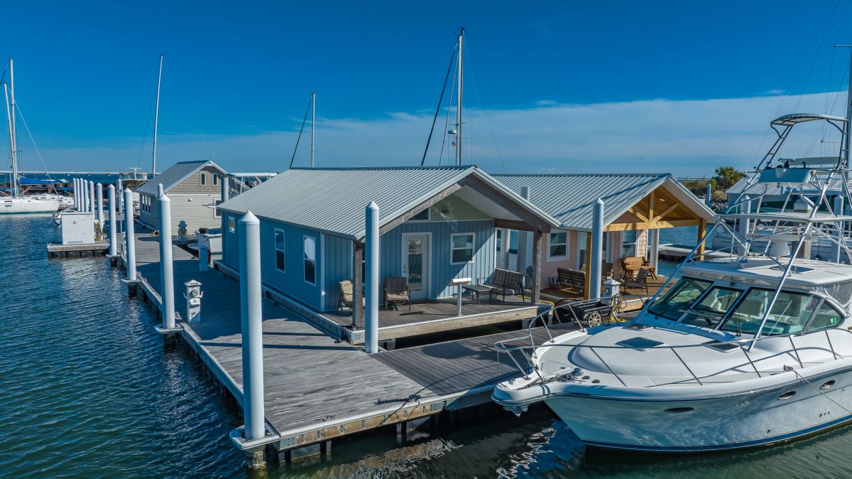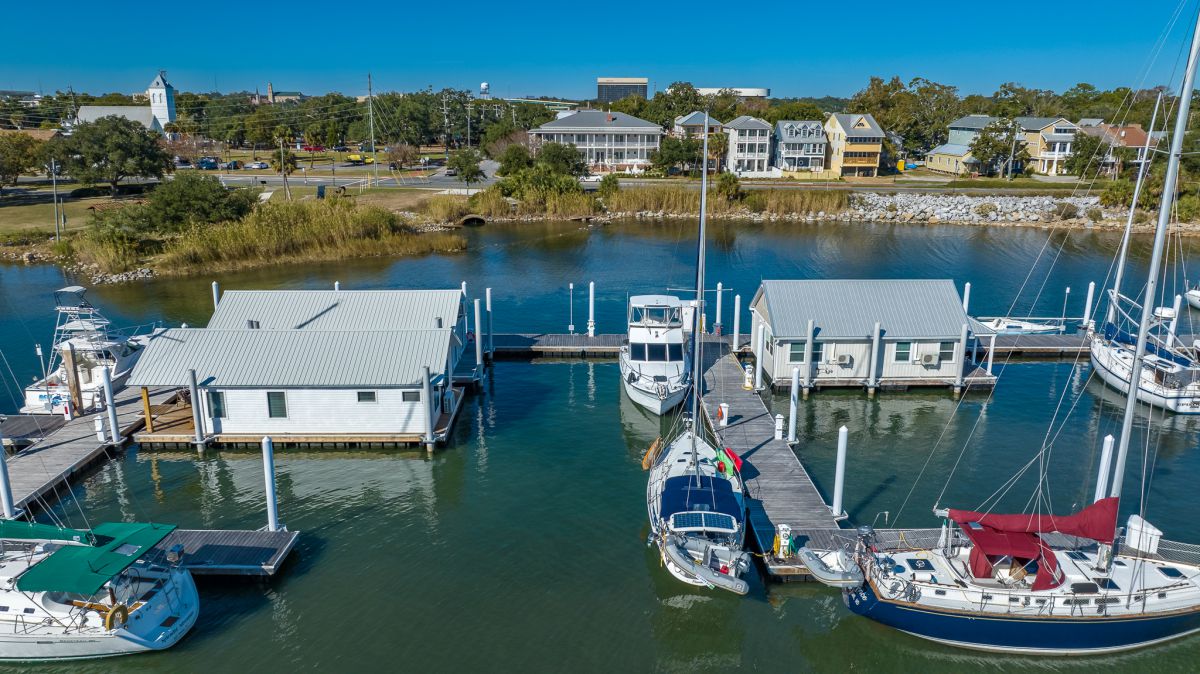 Seville Harbour Marina and the unique Houseboats of Seville Harbour are nestled in between the Port of Pensacola to the south and historic waterfront Bartram Park & Seville Square to the north. Just blocks away from Palafox Street and the Seville historic district, it is an easy walk to all the offerings of downtown Pensacola. The basin is protected by a metal sheet pile breakwater with granite riprap. The marina offers floating docks with Ipe decking, environmentally friendly Eco-Pile composite pilings and 240v-30/50/100 Amp power & 208v 3-phase 100 Amp power with state-of-the-art GFCI protection against stray current. Gated aluminum ADA compliant gangways offer marina security. Water depths of 8’-10’ allow for vessels up to 125’ in length, with all side-tie slips. The amenities include Wi-Fi, the BathMat (bathrooms with showers/laundry), the Grill Deck and a fish cleaning station. Also home of the Marina Office, this well protected marina is an ideal location for long term, transient, and daily dockage - or - a short-term vacation rental in one of the Houseboats.